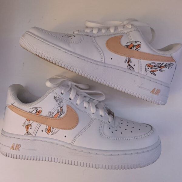 Take a bold step in unique style with these Goldfish Custom Sneakers Air Force 1. Featuring an iconic design with goldfish accents, these sneakers provide a daring look and an adventurous vibe with every step. Make a statement and stand out in style.nn? 100% Authentic & New.n? Crafted with meticulous care.n Resistant to water and scratches.n? Worldwide Shipping at No Cost.n? Secure and Effortless Checkout.
